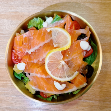 Куриное филе, салат Микс, помидоры Черри, прованские сухарики, сыр Пармезан, оригинальный соус Цезарь